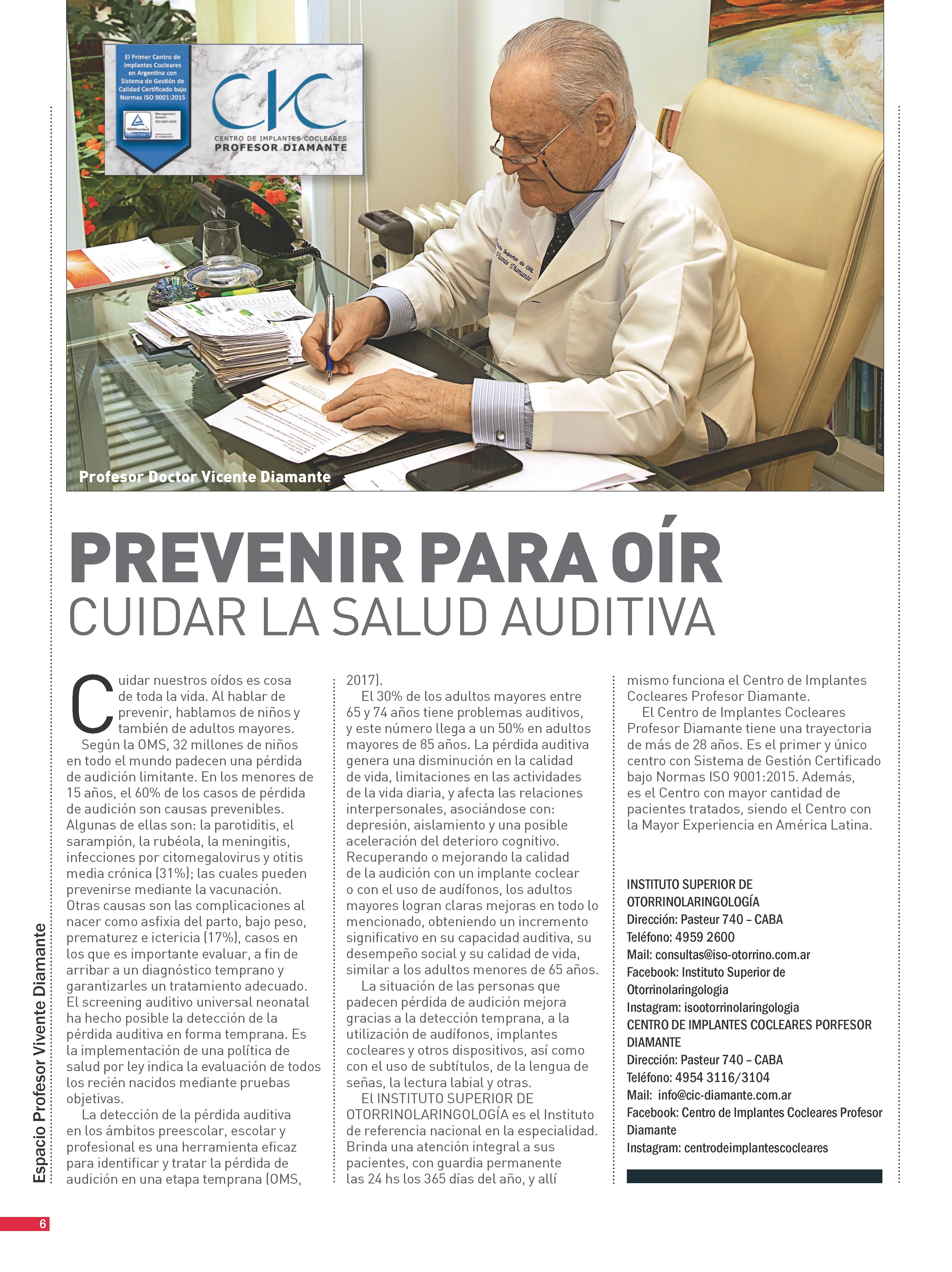 “Prevenir para oír. Cuidar la salud auditiva”, por el Prof. Vicente Diamante, Noticias. 29/12/2017